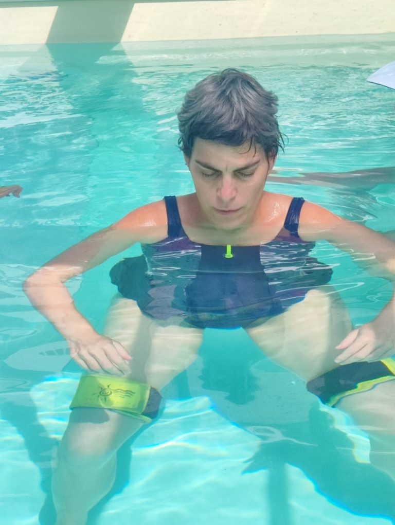 It combines your own breathing pace followed by a progressive sequence of gentle positions in water.